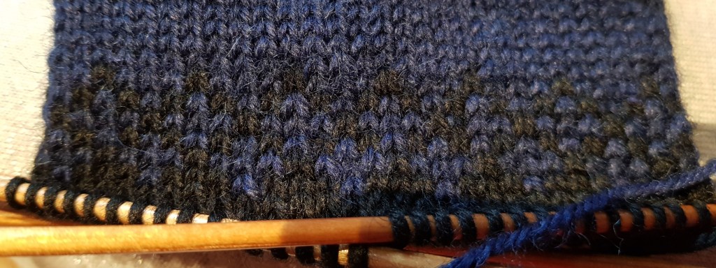 Joustimeksi valikoitui smokkijoustin, herrasmiesmäistä sekin, joissain vanhemmissa neulekirjoissa nimi on lyhde. Hieman hitaampi tehdähän tuo oli kuin ihan 2o, 2n-joustin, mutta näyttävyyttä siinä kyllä on! Toinen huomioitava asia on se, että kyseinen joustin ei jousta alkuunkaan yhtä paljon kuin joustimet yleensä joten silmukkamäärä saa olla reilumpi.
