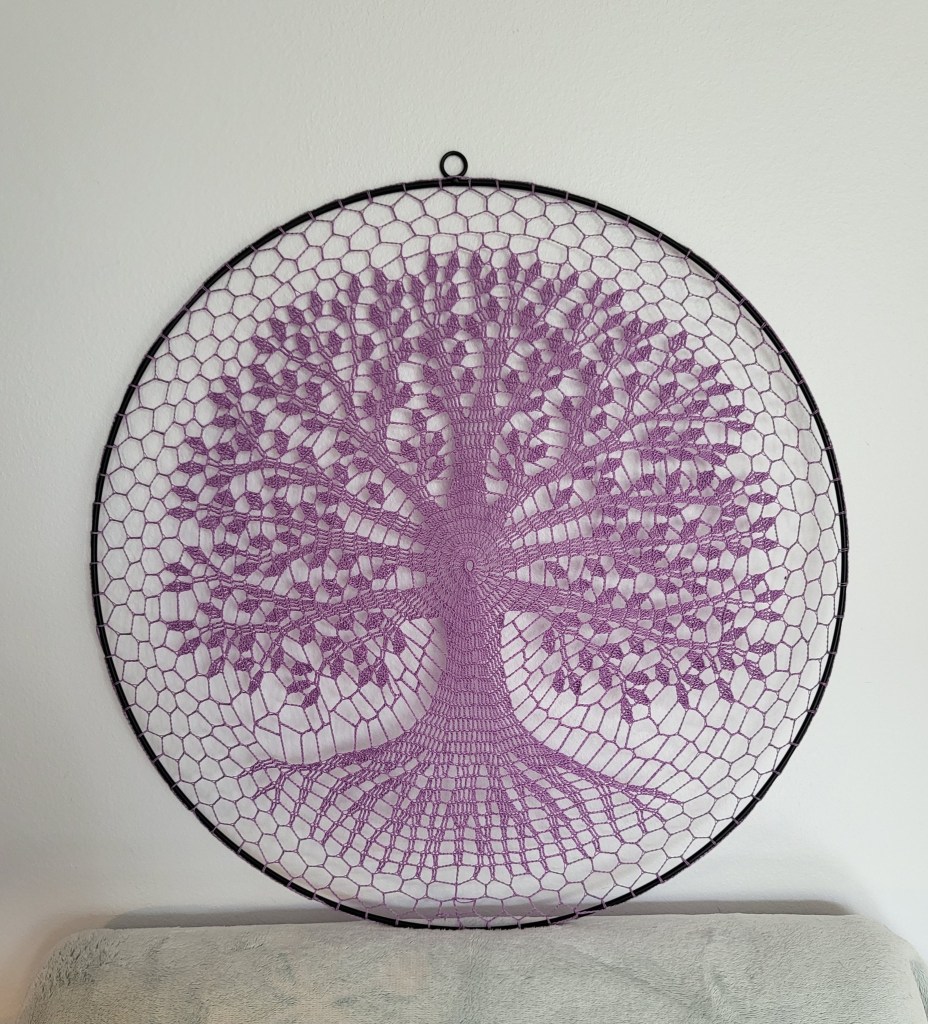 Siispä virkkailemaan. Ja kun kerran virkkaillaan, niin virkkaillaan sitten ihan tosissaan. Pinterestistä osui silmään kerran jos toisenkin tämä Elämän puu ja ilokseni sen mallikin oli ilmaiseksi saatavilla. Malli löytyy täältä.