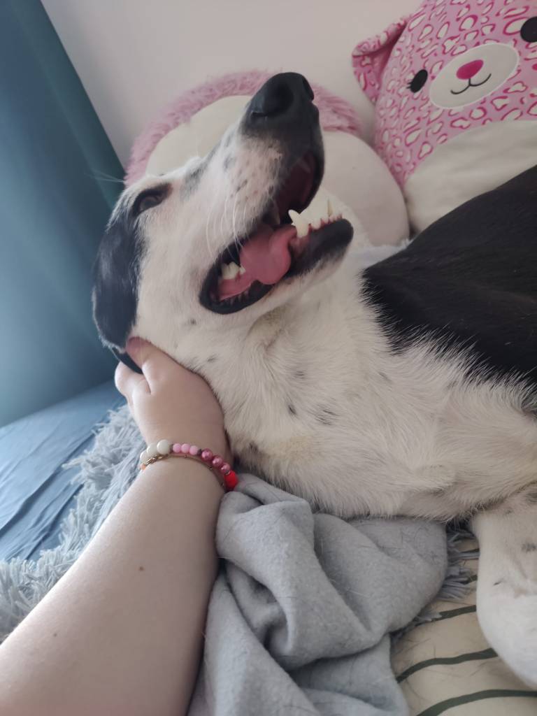 Muilta osin homma onkin ollut suht ok. Kaveri on varsin rauhallinen ja tuumaileva tyyppi, arka toki vielä vieraita kohtaan ja edelleen miehet ovat superpelottavia olentoja. Naiset nyt menee, mutta itsenäisesti kaveri ei vielä naistenkaan seuraan hakeudu. Paitsi tyttären, sen oman ihmisen. No, eipä kaveri ole vielä iälläkään pilattu, alle vuoden ikäinen, joten kehitykselle on vielä runsaasti aikaa.