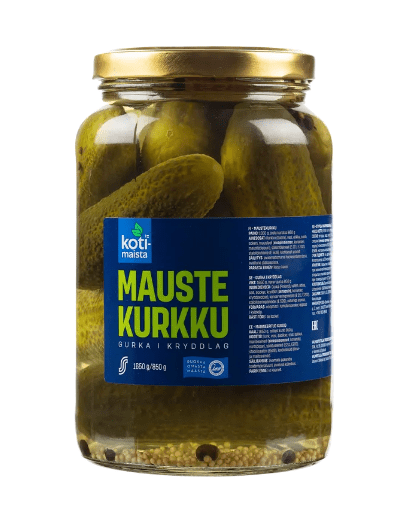 Yleensä ostamme aina tämän kunnon purkin suolakurkkuja ja tarpeen mukaan siivutan niitä suoraan tupperin herkkuhissiin. Olen aina ollut ja olen edelleen vahvasti siinä uskossa, että metallisessa säilykepurkissa ei parane säilyttää mitään sen avaamisen jälkeen, joten loput päätyy odottamaan vuoroaan jääkaapissa nököttävään isoon lasipurkkiin, joka on jäänyt jostain aiemmasta kurkkuostoksesta.