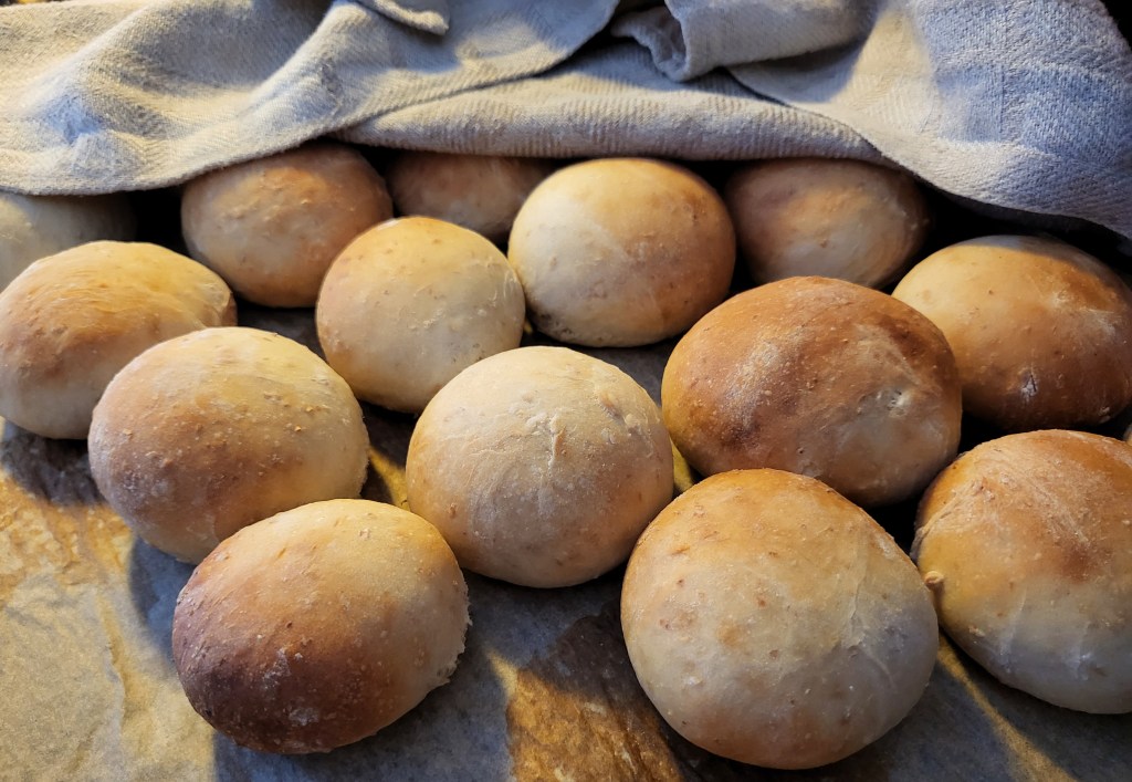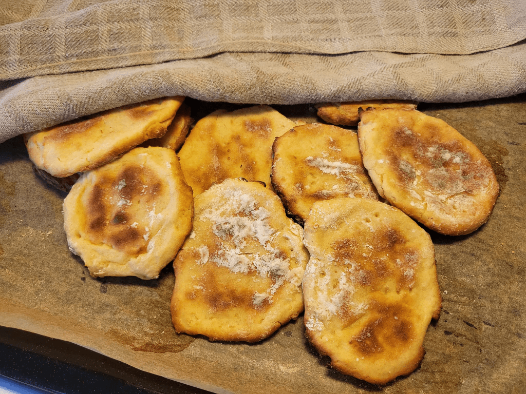 Pari litran taikinaa tuli tehtyä, loppusaldona oli kuusi limppua. Kolme niistä päätyi joulukukkasiksi, yhdestä limpusta nuorimmainen söi aamupalana puolet. Joulukukkien väsääminenhän aiheutti tietysti sen, että aamupäivästä ajelin vielä kesken puuhien pitkin kyliä viemässä niitä limppuja saajilleen, joten riistasoosin teko jäi myöhempään.