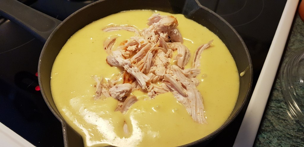 Ihan aito kanaviillokkihan tehdään ihan oikeasta kanasta tai jos sitä ei ole saatavilla niin vähintään kokonaisena kypsennetystä broilerista. No, minäpä oikaisen aina tässä kohtaa sillä kanan rintaleikkeet, luulliset, toimii mielestäni täydellisesti tässä ruoassa. Tällä kertaa kanapaketissa oli niin muhkeat leikkeet, että pakastin niistä puolet sen jälkeen kun olin ensin kypsentänyt ja riipinyt ne suikaleiksi.