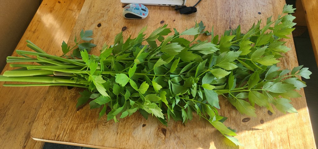 Nyt lipstikkasuolasatsi 2 on uunissa kuivumassa, eilen hyödynsin pelkät lehdet ja tänään uuniin kuivumaan lehdistä ylijääneet varret. Mainio tuote, etten sanoisi. Huomenna lipstikkasuola pääsee maustamaan hirvipyöryköitä.