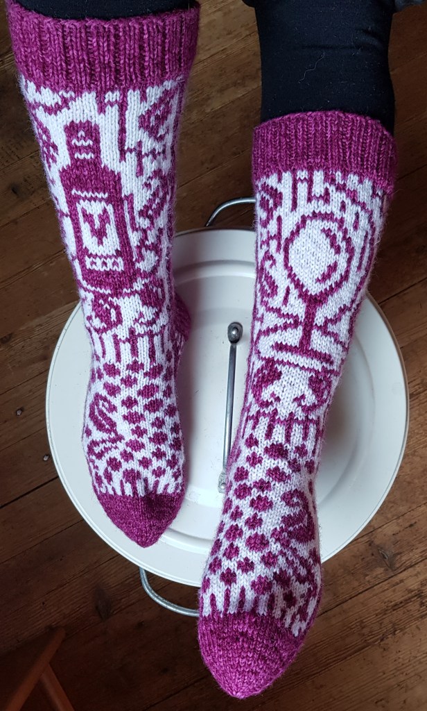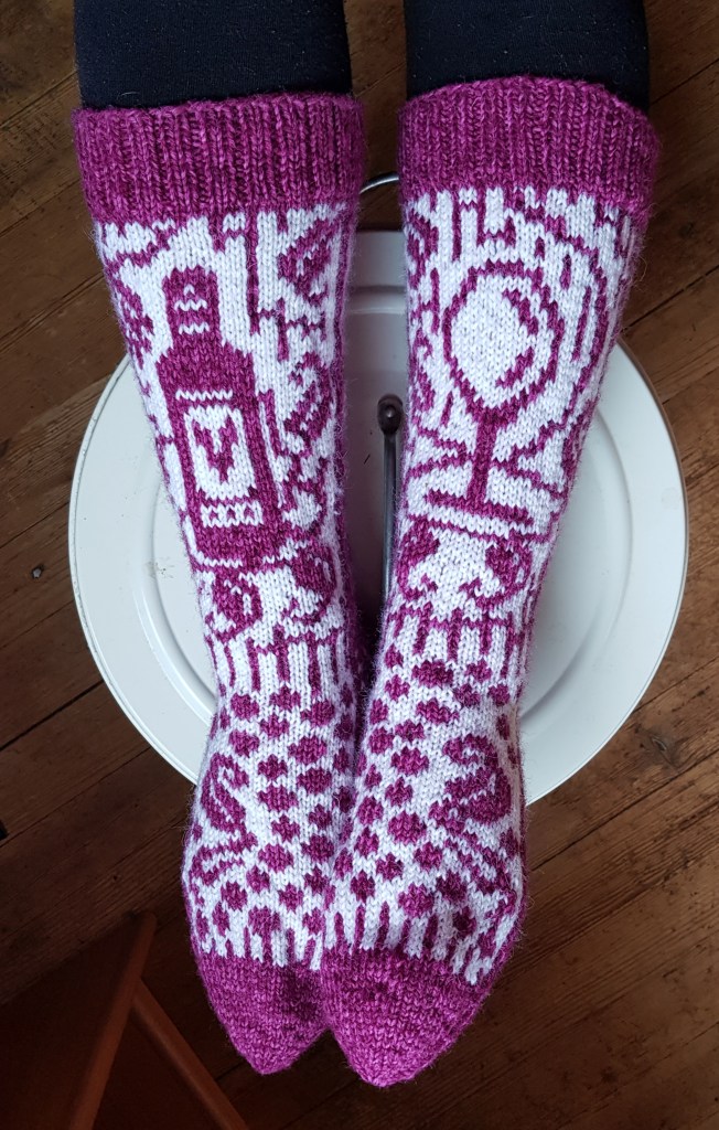 Huom!!! Muistathan, että ilman Sinebrychoffin lisenssiä näitä sukkia ei saa tehdä kuin omaan käyttöön! Lisäksi näitä, aivan kuten Lonkerosukkiakin, koskee myös ikäraja, eli ei alle 18-vuotiaille, kiitos!