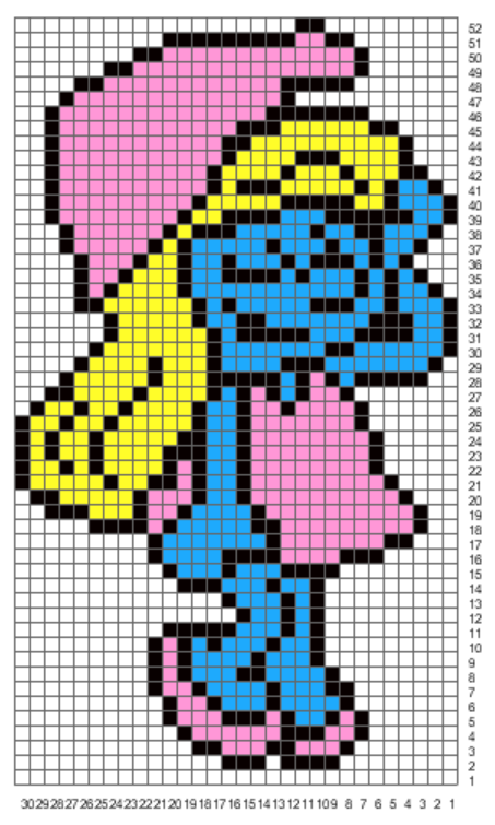 Jo pidemmän aikaa on ajatus smurffisukista kutkuttanut takaraivossa ja nyt päätin ottaa ne asiakseni. Smurffeihin löysin hyviä kuvia Pinterestistä, mutta kappas kummaa nehän oli kaikki hieman turhan isoja sukkien varsiin käytettäväksi. Ei siis muuta kuin piirtämään niiden pohjalta uusia kuvia ja sukkia tekemään.