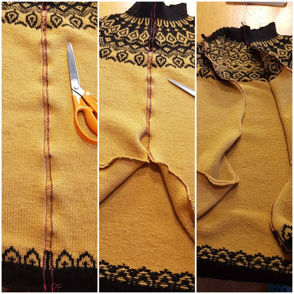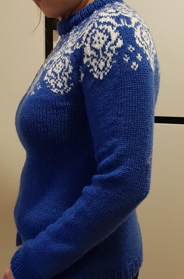 Kotona oli sitten vuorossa pähkäily ohjeesta ja kas, Rknitsiltähän löytyi aivan täydellinen Sisko-ohje. Ensimmäisen valmistuttua olin niin päätäpahkaa rakastunut langan kutomisen helppouteen, saatika sitten paidan tuntuun että sen keveyteen päällä, että pakkohan sitä oli hakea lisää. Onneksi tuota sinistä, josta tein sen ensimmäisen paidan, itselleni jäävän, oli vielä riittävästi jäljellä sillä työkaverihan toivoi samanlaista sen nähtyään.