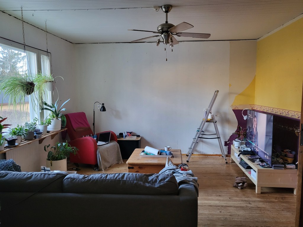 Joten työmaalta kotiuduttuani päädyin keittämään kahvit ja suuntaamaan yläkertaan. Nyt on neitosen kammari kunnossa, peti laiteltu vimpan päälle ja hyllyt järjestelty. Vielä olisi edessä mietintä siitä, pitäisikö huoneen telkkariin yhdistää pleikkari, niin että saisi sinne suoratoistopalvelut toimimaan. Katsoo nyt saako aikaiseksi.