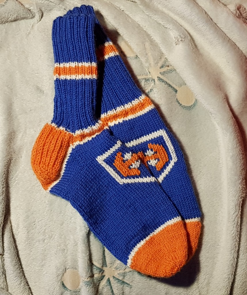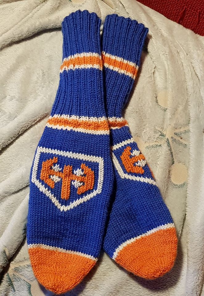 Ajatuksena on saada kaikille kiakkoa seuraaville lapsosilleni sekä lapsenlapsille tällaiset joulupaketteihin, joten sarjatuotannoksihan tämä meni. Onneksi Ipa-versioita ei tarvinne tehdä kuin nuo yhdet, jos nyt sitten ne talon kaksi muuta Ipa-fania ei yhtäkkiä innostu juuri näistä väreistä, mutta epäilen. Me muut olemme Tappara-faneja, joten nyt on itselle töihin sisätossuiksi yhdet valmiina, samoin pienimmälle lapsenlapselle sinne joulupakettiin.