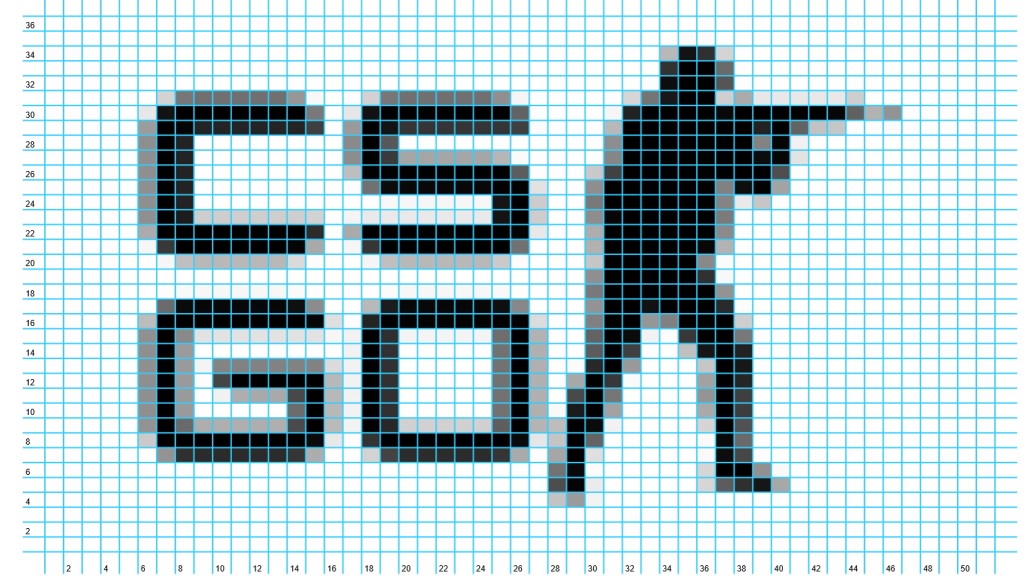 Ensin silmukoin kirjaimet, sitten mustat reunukset valkoiselle alueelle.