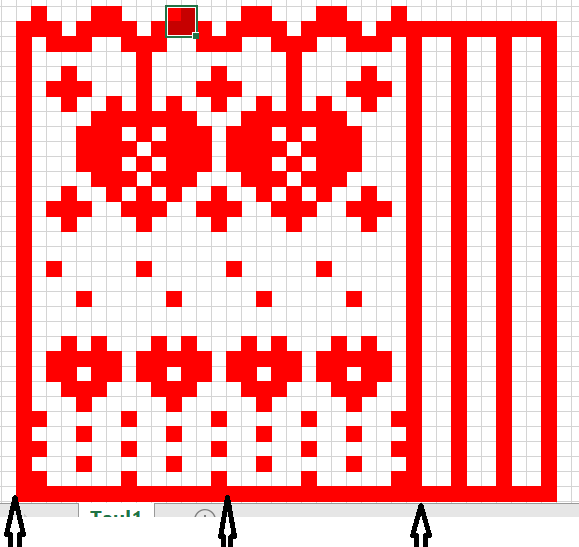 Kantapään jälkeen kudottavaksi jäi 50 silmukkaa ja sen mukaisesti piirsin kuviot varren alaosaan.