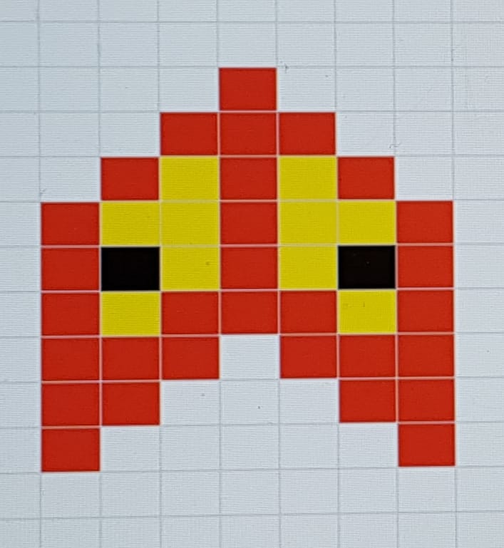 Luo 55 silmukkaa punaisella ja kudo mieleisesi matka valepalmikkoa. Vaihda valkoiseen lankaan ja kavenna valkoisella kerroksella yksi silmukka pois (9llä jaollinen). Kudo kaksi kerrosta valkoista ja vaihda keltaiseen. Kudo keltaisella vähintään 2 kerrosta, korkeintaan neljä (oma näkemykseni maksimimäärästä) ja aloita kettukuviointi.