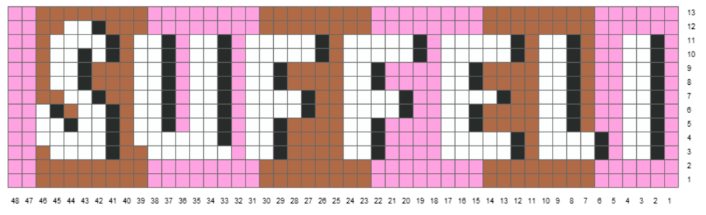 Koska en löytänyt suoraan Suffeli-tekstin ohjetta mistään, en omista vanhoista ruutupaperiviritelmistänikään, päädyin piirtämään sen Knitbirdiin. Saa lainata, mutta muistattehan että ilman Fazerin lisenssiä sukkia saa tehdä vain omaan käyttöön tai lahjaksi.