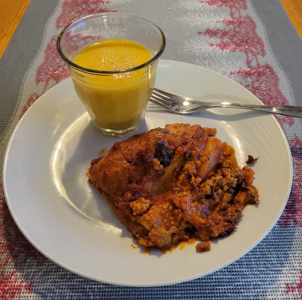 Mies oli sopivasti tehnyt ruoan uuniin ja tarjoili varsin herkullisen aterian, hänen tekemänsä lasagnette on aina kerrassaan hyvää. Tarjoilukin oli melkolailla näyttävä, ihan hieman jäin kieltämättä kaipaamaan niitä vihreitä ja värikkäitä lisukkeita, mutta no. Tulihan niitä töissä jo syötyä.