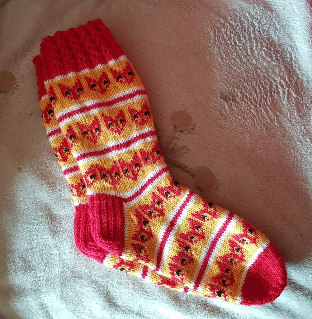Mikä lie namihinku iski kesken elokuun, tein väliin todelliset ”aivot narikkaan”-sukat, eli salmarit ja kettukarkit. Ohjeet molempiin on jo ennestään blogissa, ei kun nauttimaan. Näistä tuli himppasen isommat kuin aiemmin tehdyistä pareista, toivottavasti ovat saajiensa mieleen.